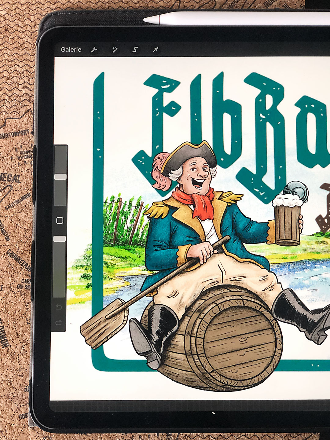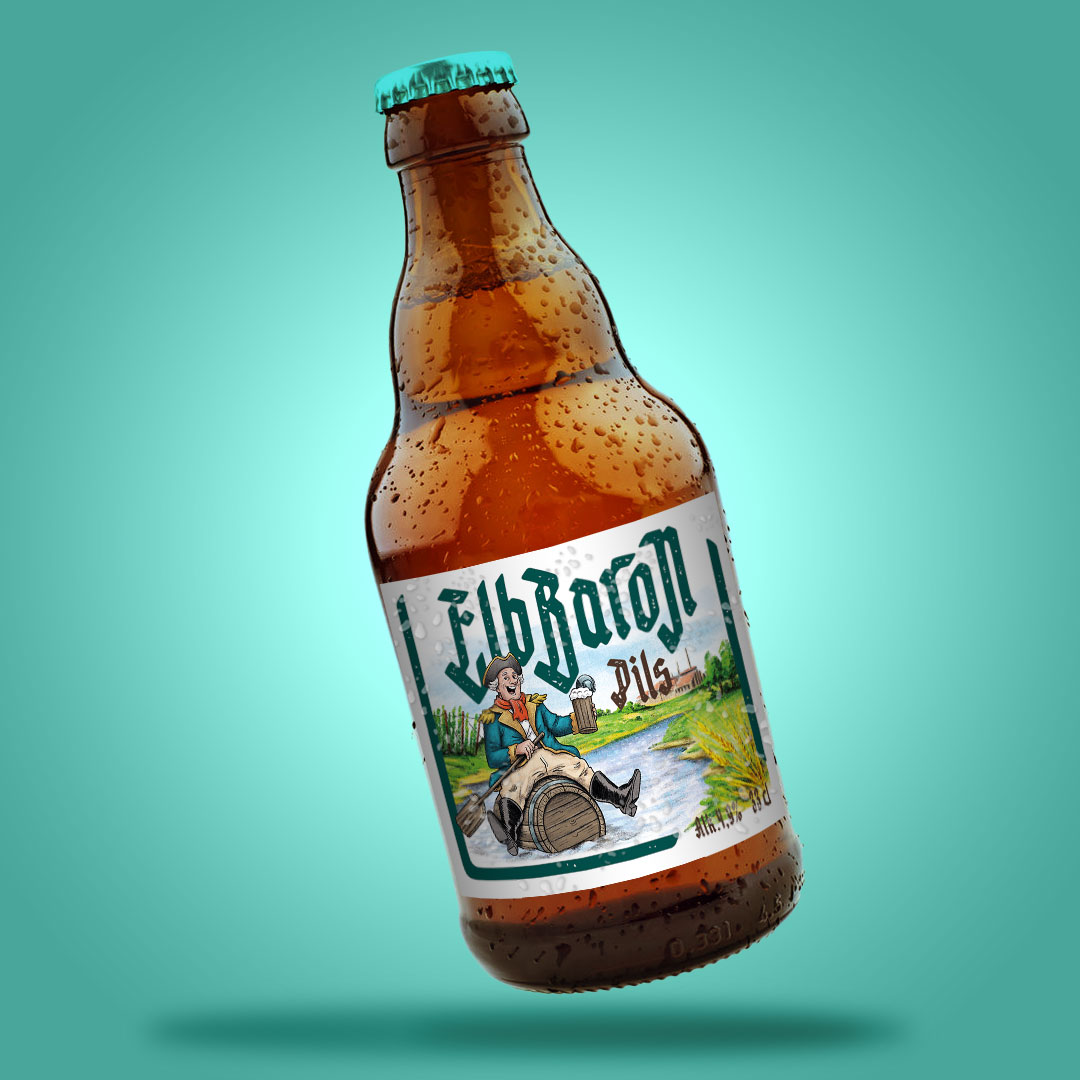 Der Auftrag umfasste die Konzeption und grafischer Umsetzung der Figur des Elbbarons, die Illustration des Hintergrunds für das Etikett sowie einzelne Freisteller-Illustrationen (Bierflasche, Hopfen, Gerste, Zitronenbaum), die auf der Webseite der Marke ihre Anwendung fanden.