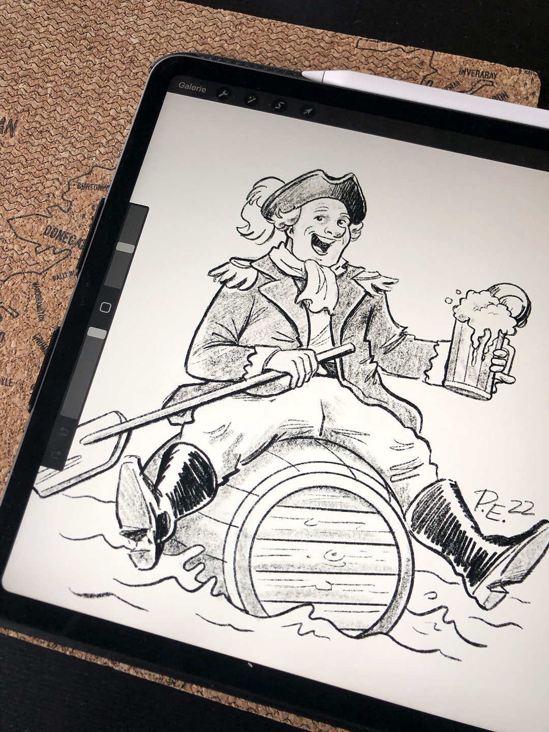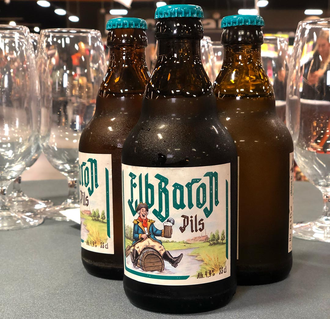 So wurde aus dem Dresdner Höfbräuhaus die Marke Elbbaron und auf deren erzählerischen Grundlage der Bier brauende Münchhausen, der fröhlich Bier trinkend und auf einem Holzfass sitzend die Elbe entlang schippert.